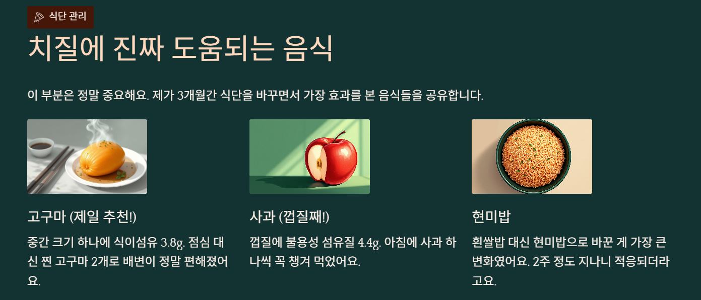 이 부분은 정말 중요해요. 제가 3개월간 식단을 바꾸면서 가장 효과를 본 치질 도움되는 좋은 음식들을 공유합니다.