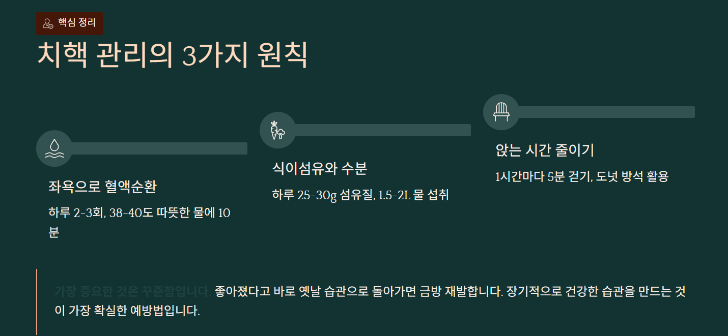 치핵 빨리 낫는법으로 제대로 된 자연치료 하는 법을 소개해드렸는데요. 초기에는 생활습관 개선만으로도 충분히 나아질 수 있어요. 좌욕으로 혈액순환 돕고, 식이섬유와 수분으로 변을 부드럽게 만들고, 앉아있는 시간 줄이는 게 기본이에요. 다만 2주 관리해도 나아지지 않거나 출혈이 계속되면 반드시 병원 가세요.