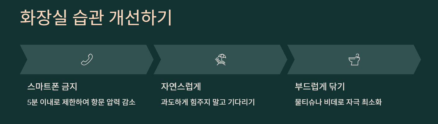 | 과도하게 힘주기 | 자연스럽게 나올 때까지 기다리기 | 혈관 보호 |