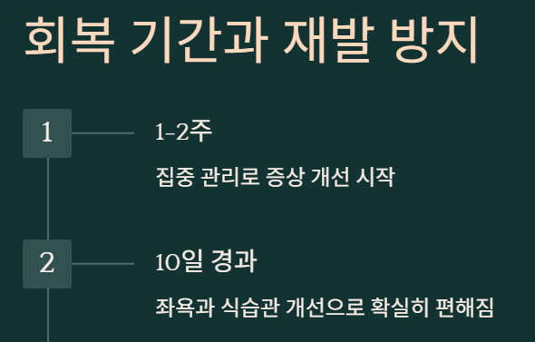 제 경험상 가장 중요한 건 꾸준함이에요. 좋아졌다고 바로 옛날 습관 돌아가면 금방 재발하거든요. 장기적으로 건강한 습관 만드는 게 가장 확실한 예방법이에요.
