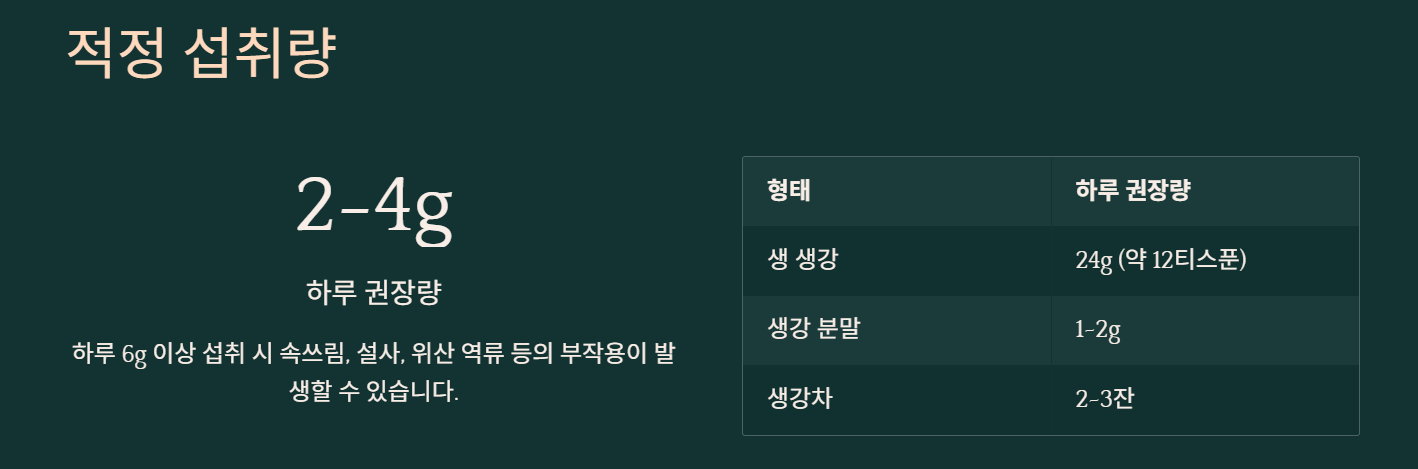 | 생 생강 | 2~4g (약 1~2티스푼) |
