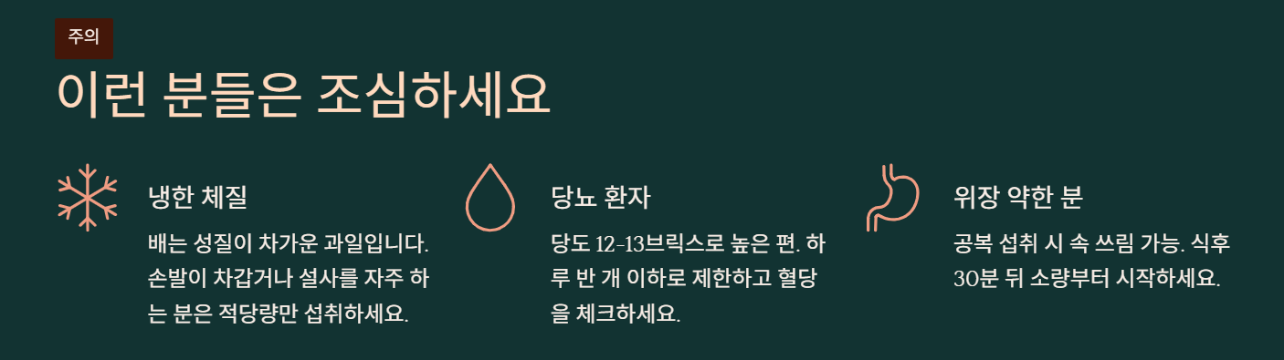 | 배 활용법 | 효과 | 주의사항 |