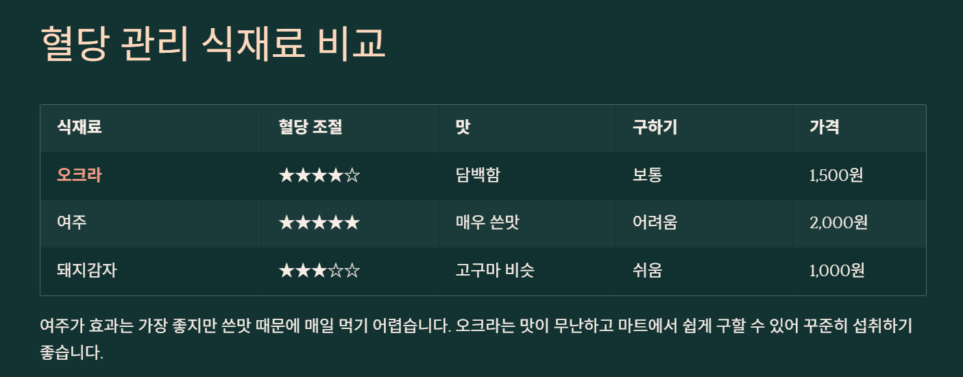 여주가 효과는 제일 좋다는데, 솔직히 너무 써서 매일 먹기 힘들더라고요. 오크라는 맛도 무난하고 마트에서 쉽게 살 수 있어서 꾸준히 먹기 좋아요.