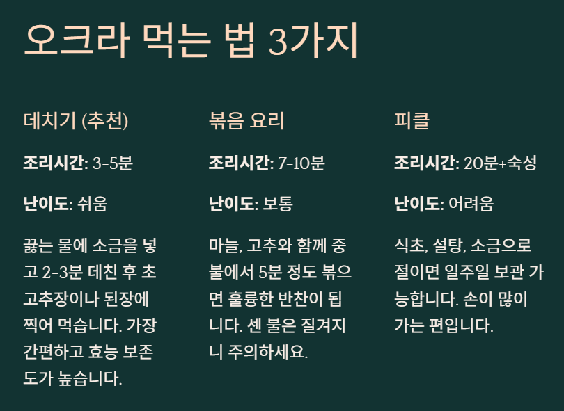 📌 오크라 먹는법 3줄 요약
