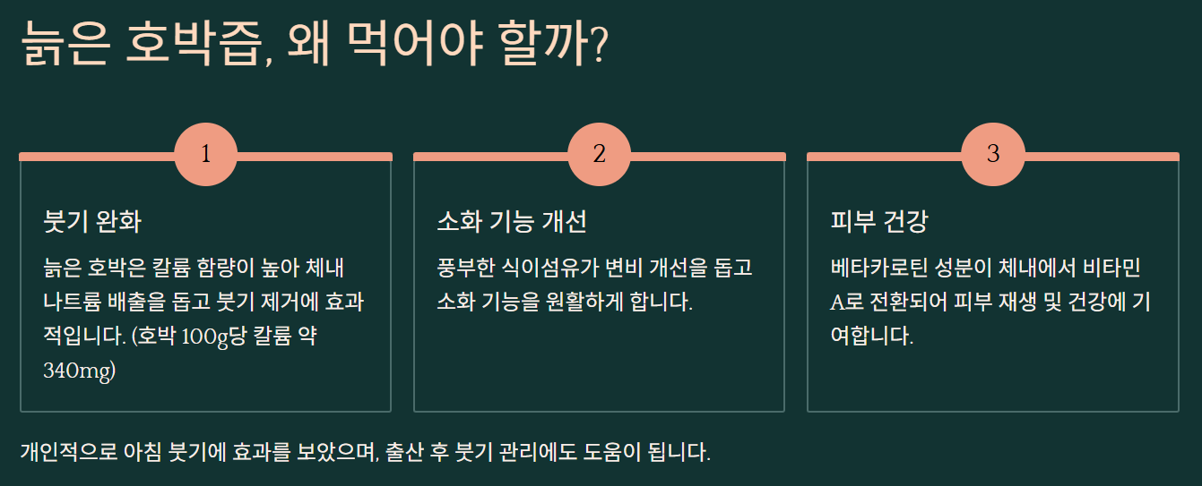 개인적으로 저는 아침에 일어났을 때 얼굴이 잘 붓는 편인데, 늙은 호박즙을 2주 정도 꾸준히 마셨더니 확실히 덜 붓더라고요. 물론 개인차는 있겠지만요.