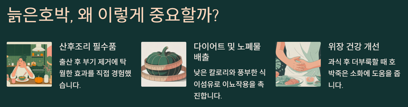 사실 저는 20대 초반엔 그냥 "어른들이 좋아하는 것"쯤으로만 생각했어요. 근데 둘째 출산하고 산후조리원에서 매일 아침 호박죽을 먹으면서 생각이 완전히 바뀌었어요. 부기가 정말 빠지더라고요.