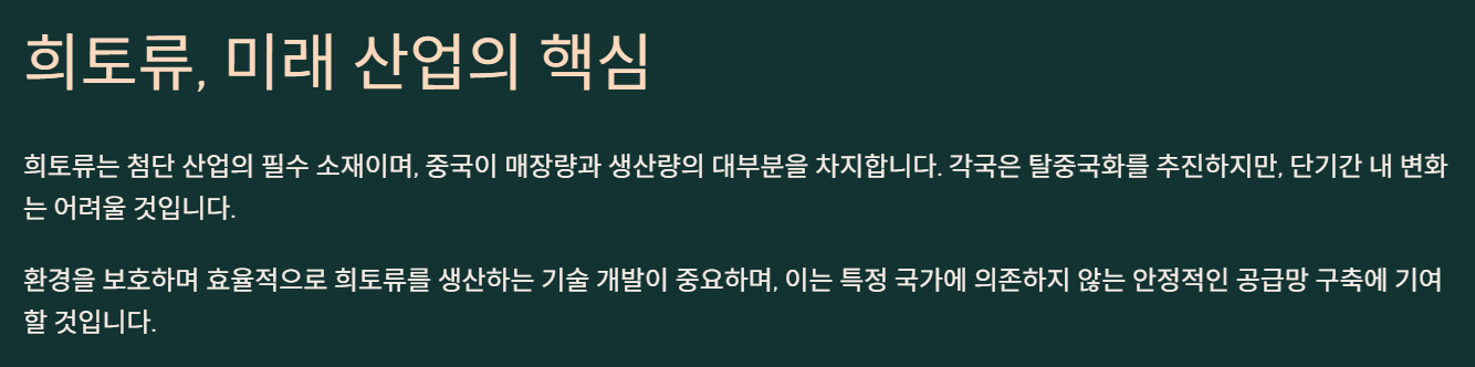 여러분도 다음에 스마트폰이나 전기차를 볼 때, "아, 이 안에 희토류가 들어있구나" 생각해보시면 좀 더 다르게 보일 거예요.