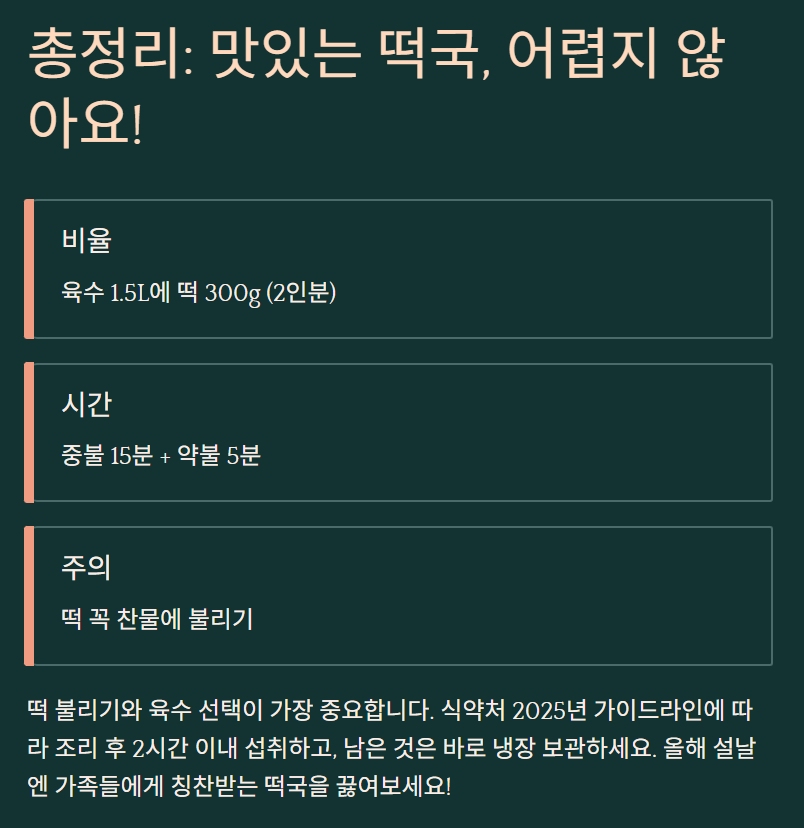 📌 떡국 맛있게 끓이는 법 3줄 정리