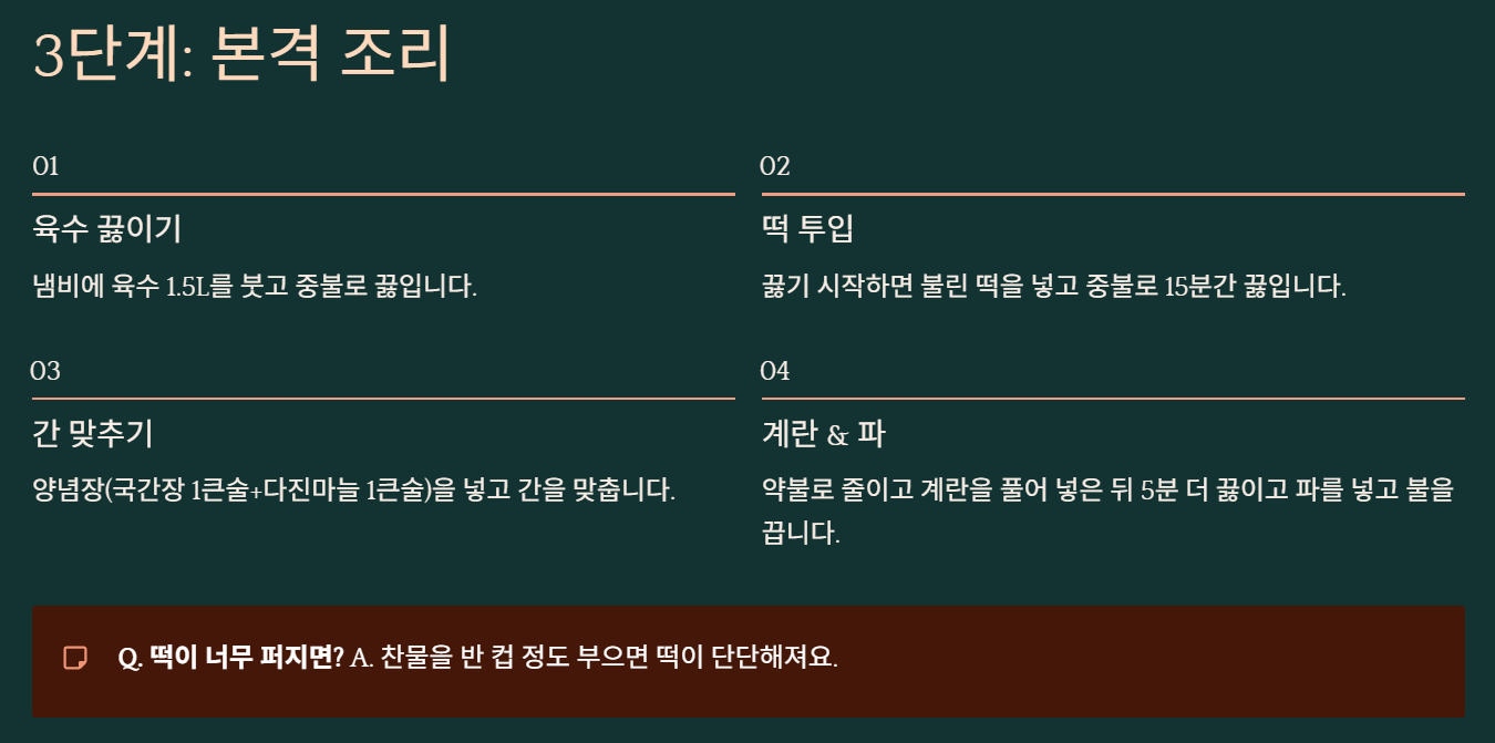✅ 비율: 육수 1.5L에 떡 300g (2인분)