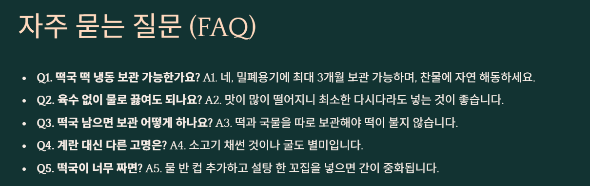 떡국 맛있게 끓이는 법을 말씀드렸는데요. 생각보다 어렵지 않아요. 가장 중요한 건 떡 불리기와 육수 선택이에요. 이 두 가지만 지켜도 집에서 맛있는 떡국 충분히 끓일 수 있어요.