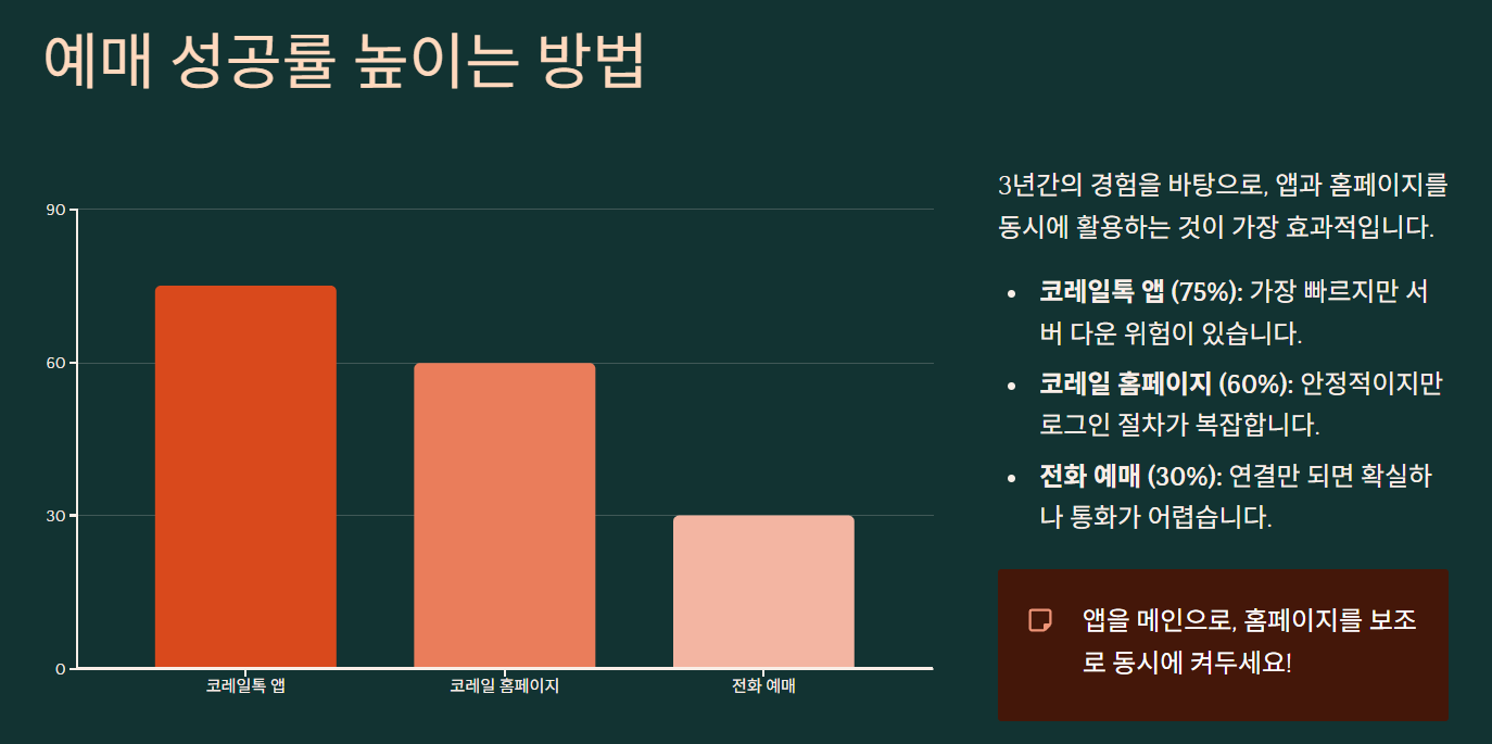 코레일톡 앱 75% 1-3분 가장 빠름, 자동 로그인 서버 다운 위험