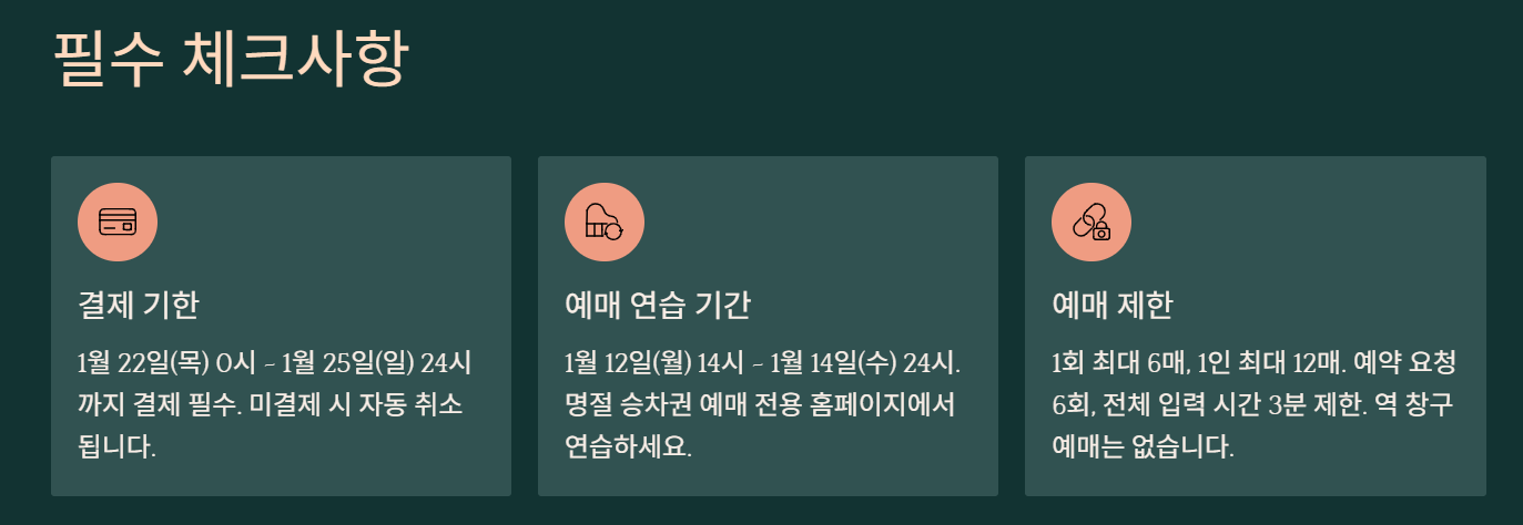 1월 26일(월)~27일(화) 교통약자 우선예매 별도 공지