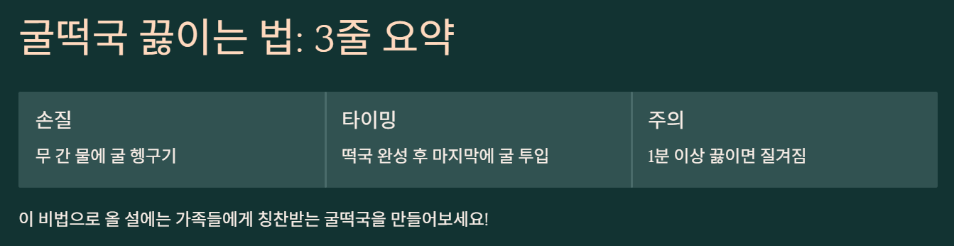 📌 굴떡국 맛있게 끓이는 법 3줄 정리