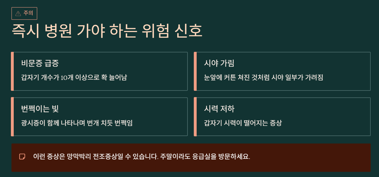 ⚠️ 갑작스런 증가·번쩍임은 응급상황