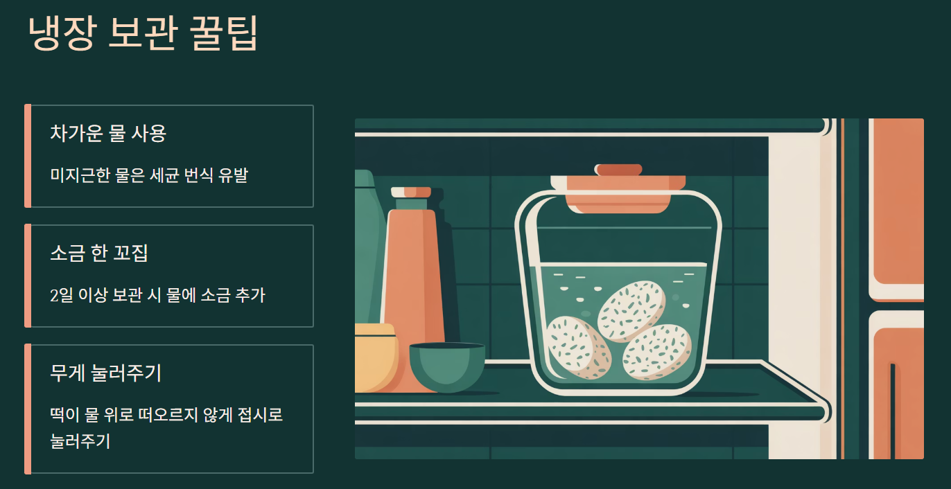 떡국떡 보관법은 생각보다 간단해요. 단기간엔 물에 담가 냉장, 장기간엔 낱개 냉동. 이 두 가지만 기억하시면 명절 때 사둔 떡을 한 달 내내 맛있게 드실 수 있어요.