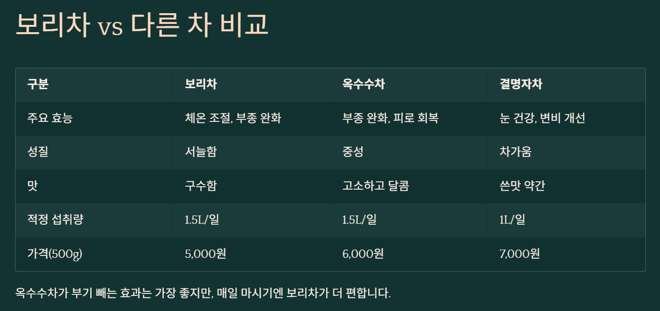 보리차 vs 옥수수차 vs 결명자차 효능 및 특징 비교
