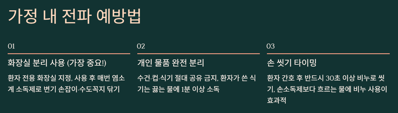 A2. 전파력이 강하긴 하지만, 철저한 격리와 소독으로 예방 가능해요. 저희 집도 환자만 격리하고 나머지는 안전했어요.