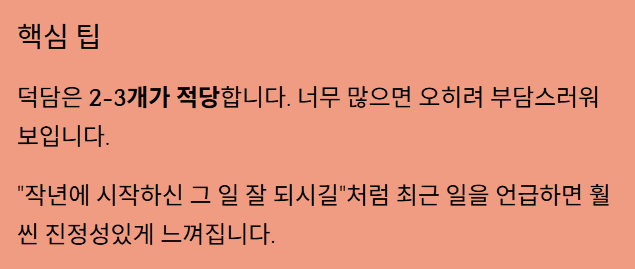 ✅ 덕담은 2-3개가 적당: 너무 많으면 오히려 부담