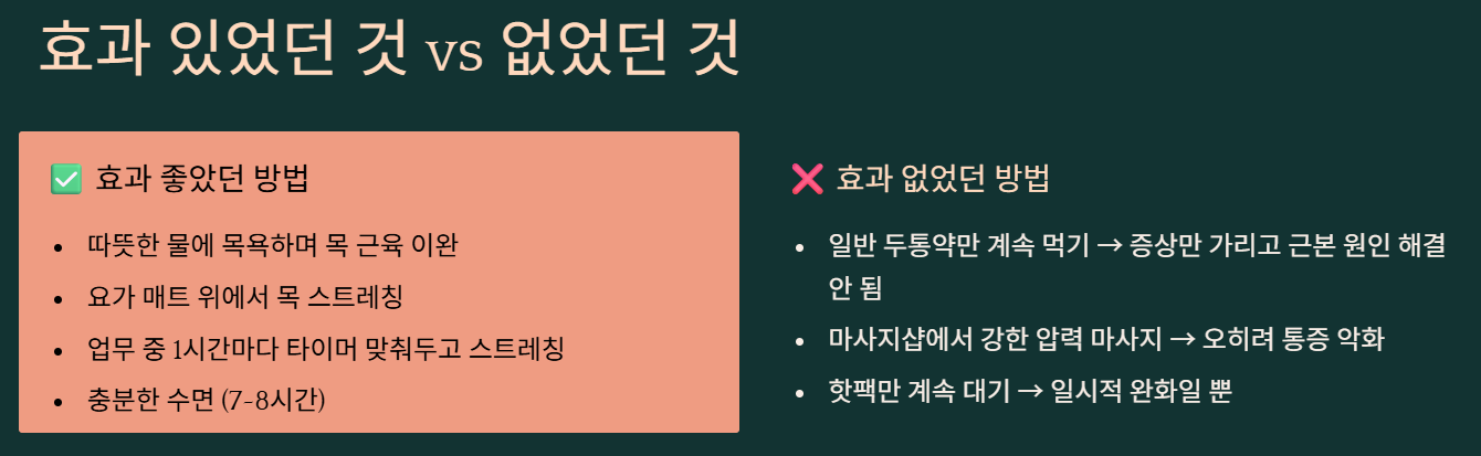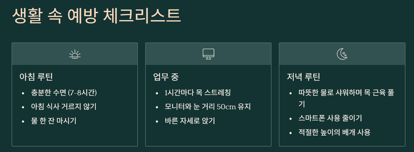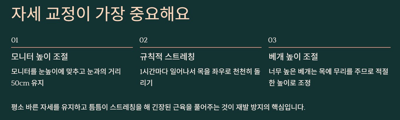 ⚠️ 예방: 바른 자세 + 규칙적 스트레칭 + 스트레스 관리