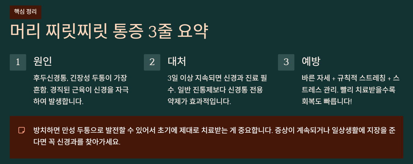 📌 머리가 찌릿찌릿 아파요 - 콕콕 찌르는듯 아픔 3줄 정리