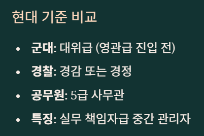 ✅ 현대 비교: 군대 대위, 경찰 경감/경정, 공무원 5급