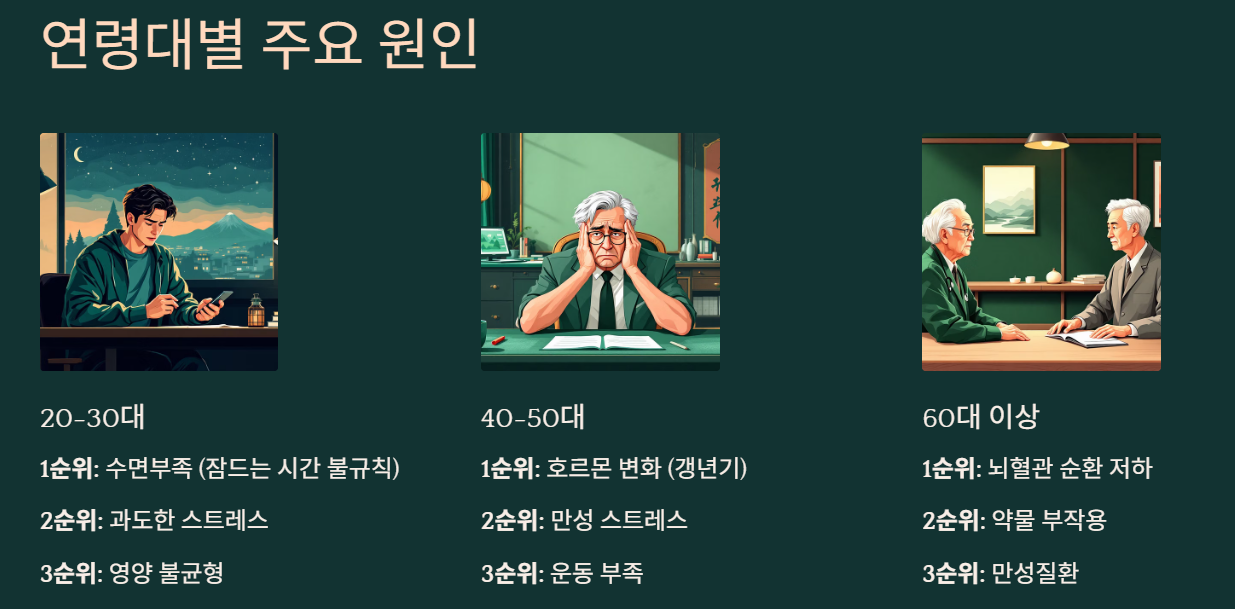 📊 연령대별 머리 멍함 주요 원인 비교표