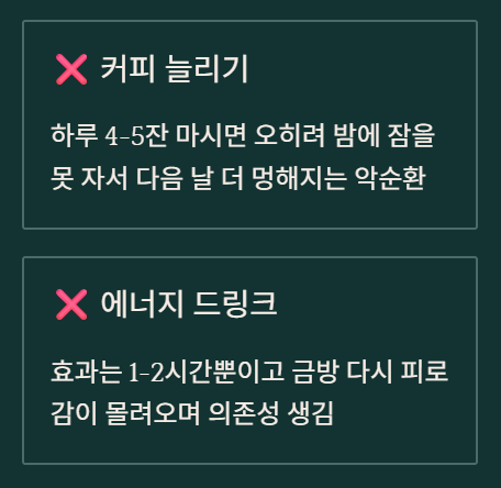 ❌ 에너지 드링크 - 순간적이고 의존성 생겨요
