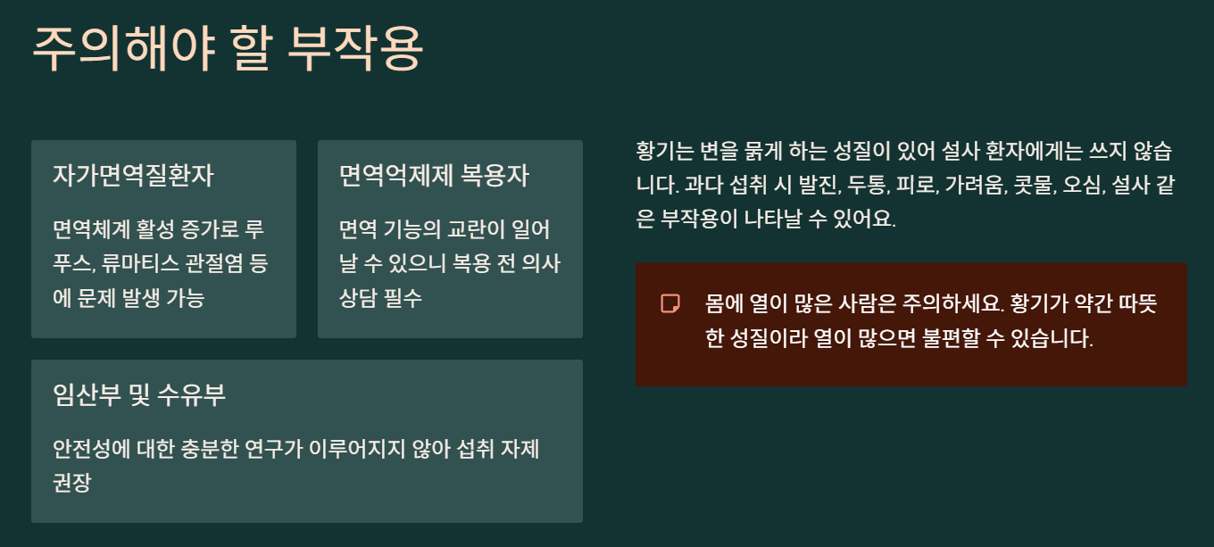 💡 황기 효능 부작용? 면역력 강화와 피로 회복에 좋지만, 면역억제제 복용자는 주의가 필요해요.