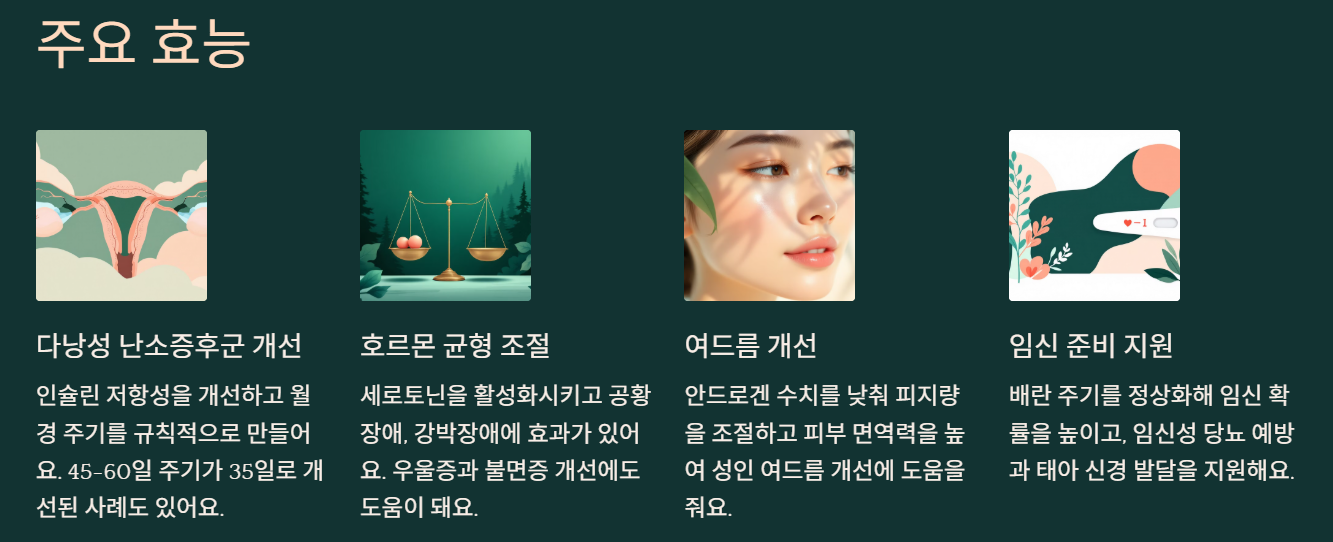 ✅ 주요 효능: 다낭성 난소증후군 개선, PMS 완화