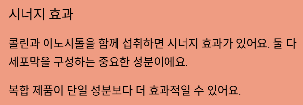 콜린과 이노시톨을 함께 먹으면 시너지 효과가 있어요. 둘 다 세포막을 구성하는 중요한 성분이거든요.