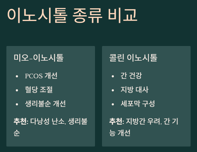 미오-이노시톨(Myo-inositol)과 콜린 이노시톨 비교