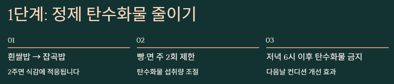 ✅ 핵심 방법: 정제 탄수화물 줄이기 + 유산소 운동