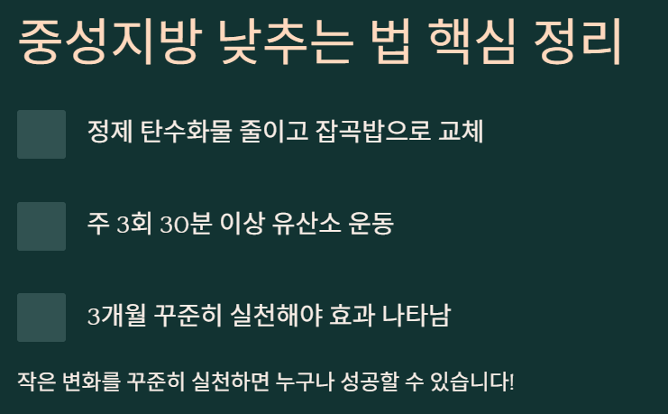 📌 중성지방 정상수치 낮추는 방법 3줄 정리