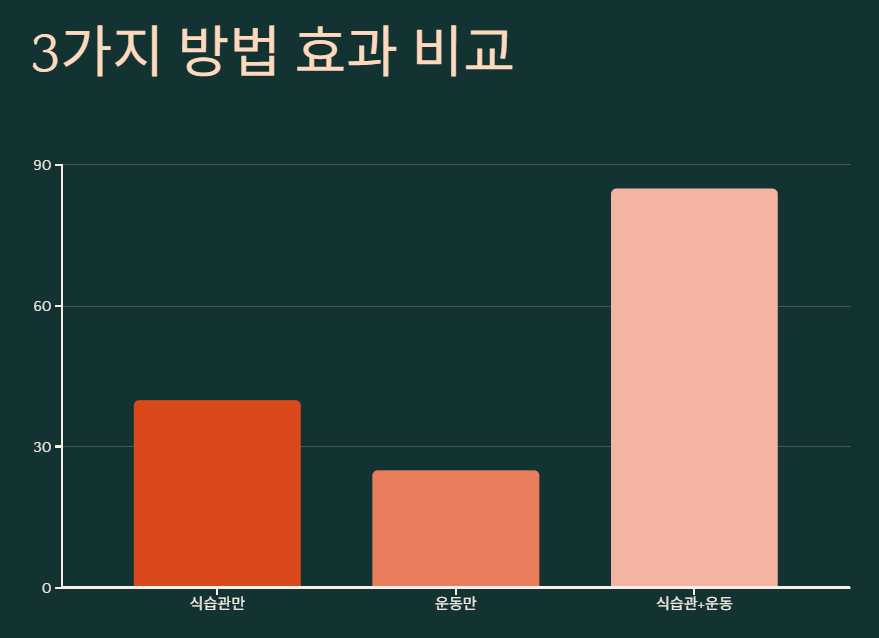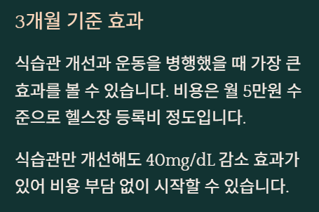 | 운동만 추가 | 25mg/dL ↓ | 어려움 | 월 5만원 |