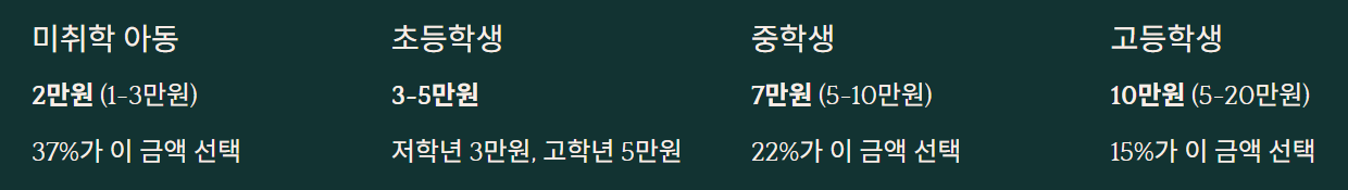 ✅ 초등학생: 3만원~5만원