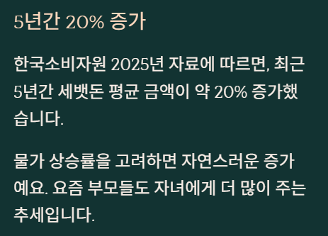 물가 상승률을 고려하면 자연스러운 증가예요. 아무래도 요즘 부모들도 자녀한테 더 많이 주는 추세니까요.