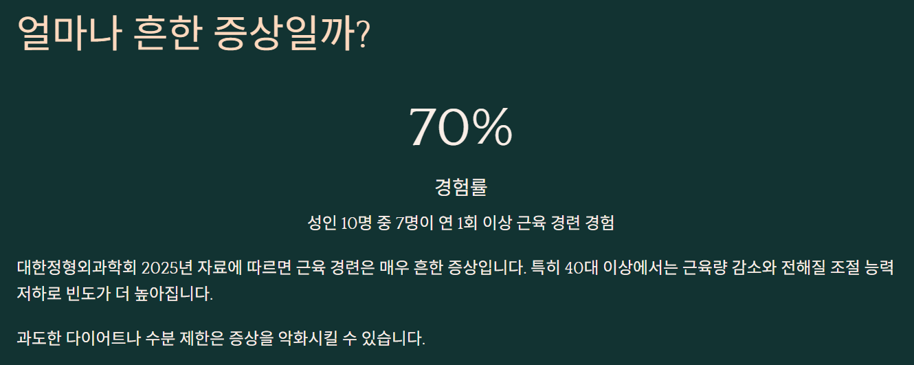 2025년 대한정형외과학회 자료에 따르면, 성인 10명 중 7명이 1년에 최소 1회 이상 근육 경련을 경험한다고 합니다. 특히 40대 이상에서는 빈도가 더 높아지는데, 이건 근육량 감소와 전해질 균형 조절 능력이 떨어지기 때문이에요.