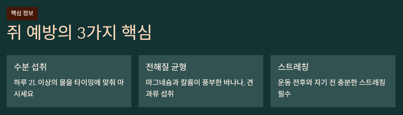 💡쥐가 자주 나는 원인 정확한 이유? 수분 부족, 전해질 불균형, 과도한 운동이 주범